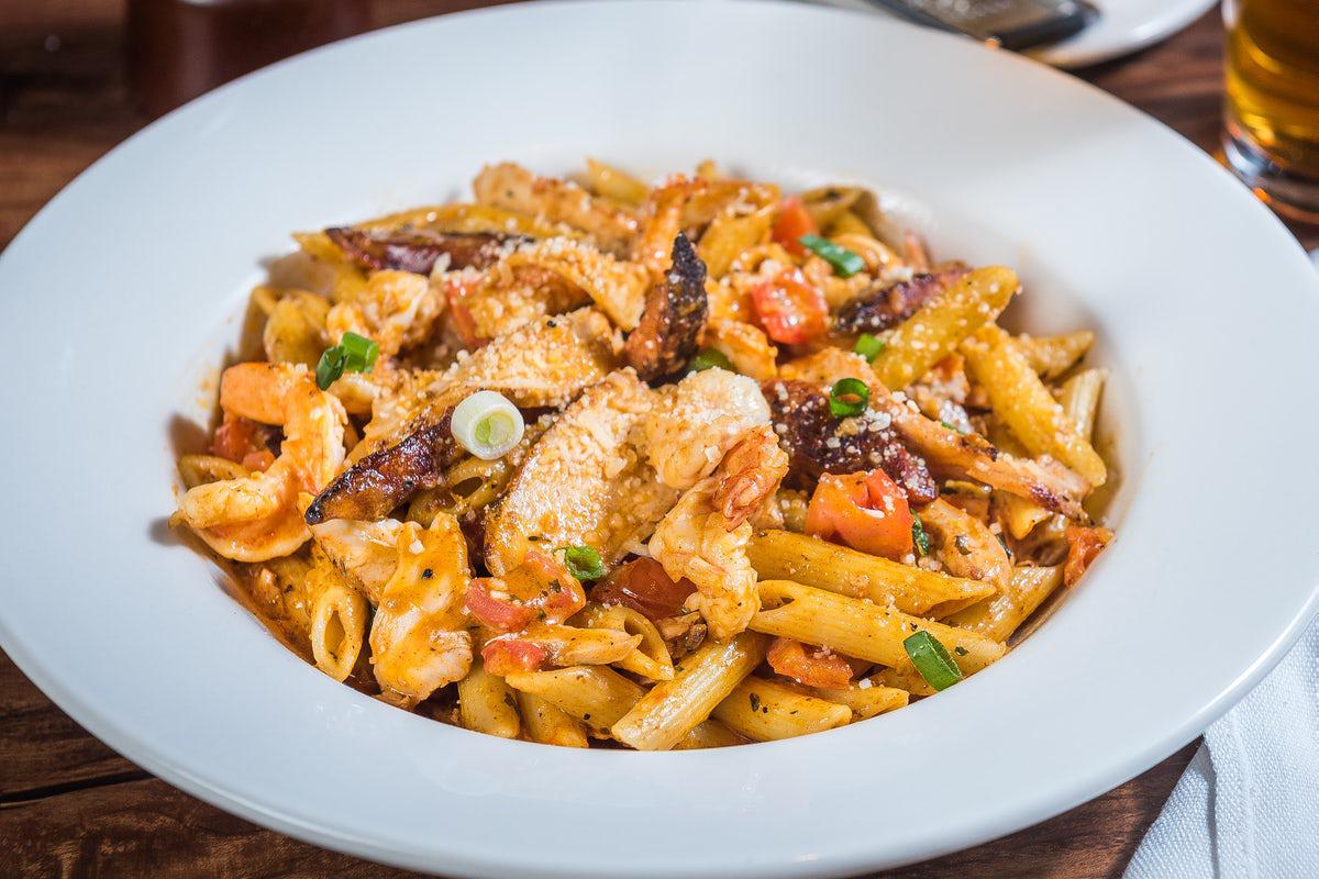 With chicken, andouille sausage, tomato, scallions & penne pasta in a spicy creole cream sauce