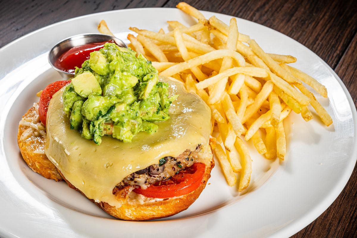 Brown rice, rainbow quinoa, black beans & beets with chipotle mayo served open faced on grilled ice box bread with tomato, havarti, guacamole & fries